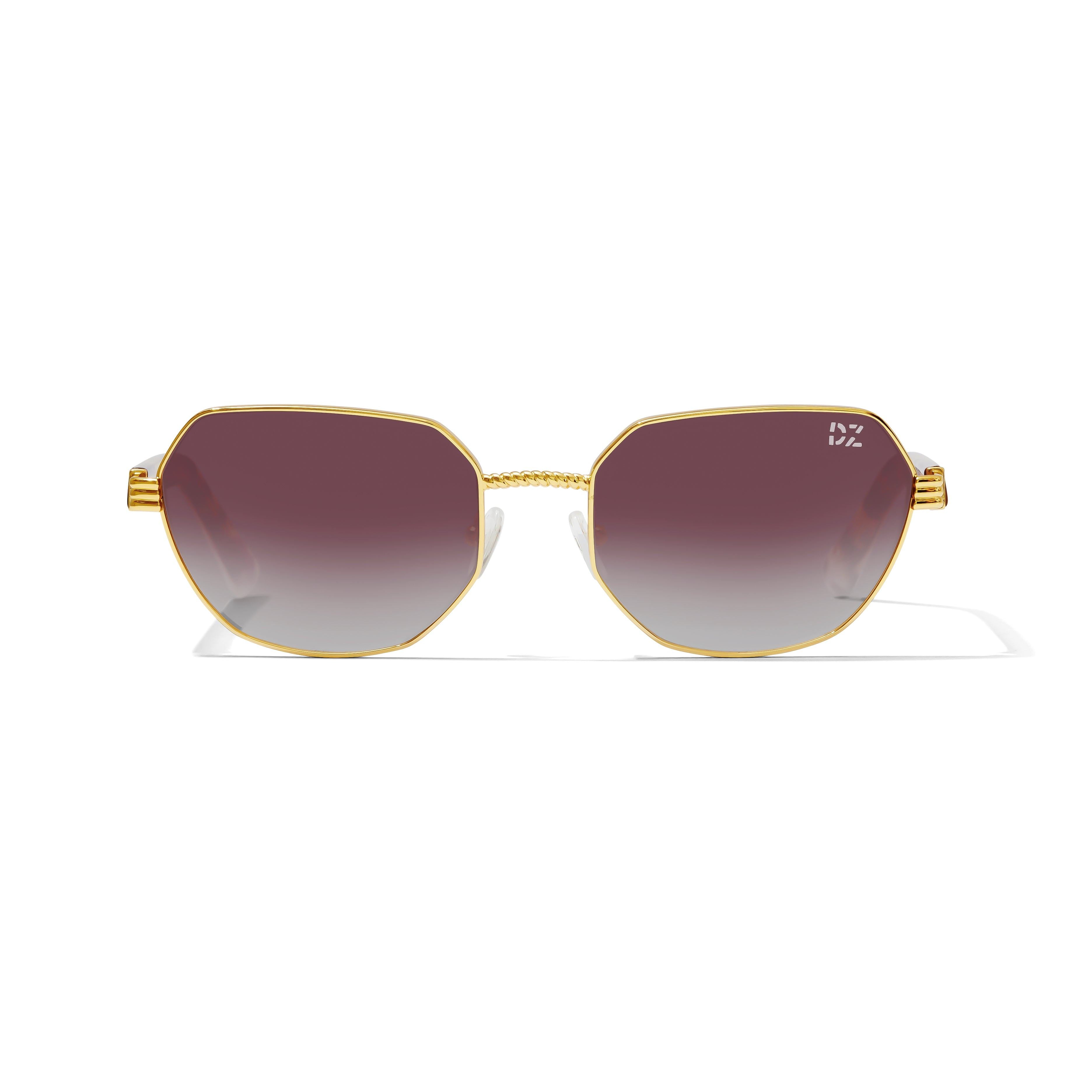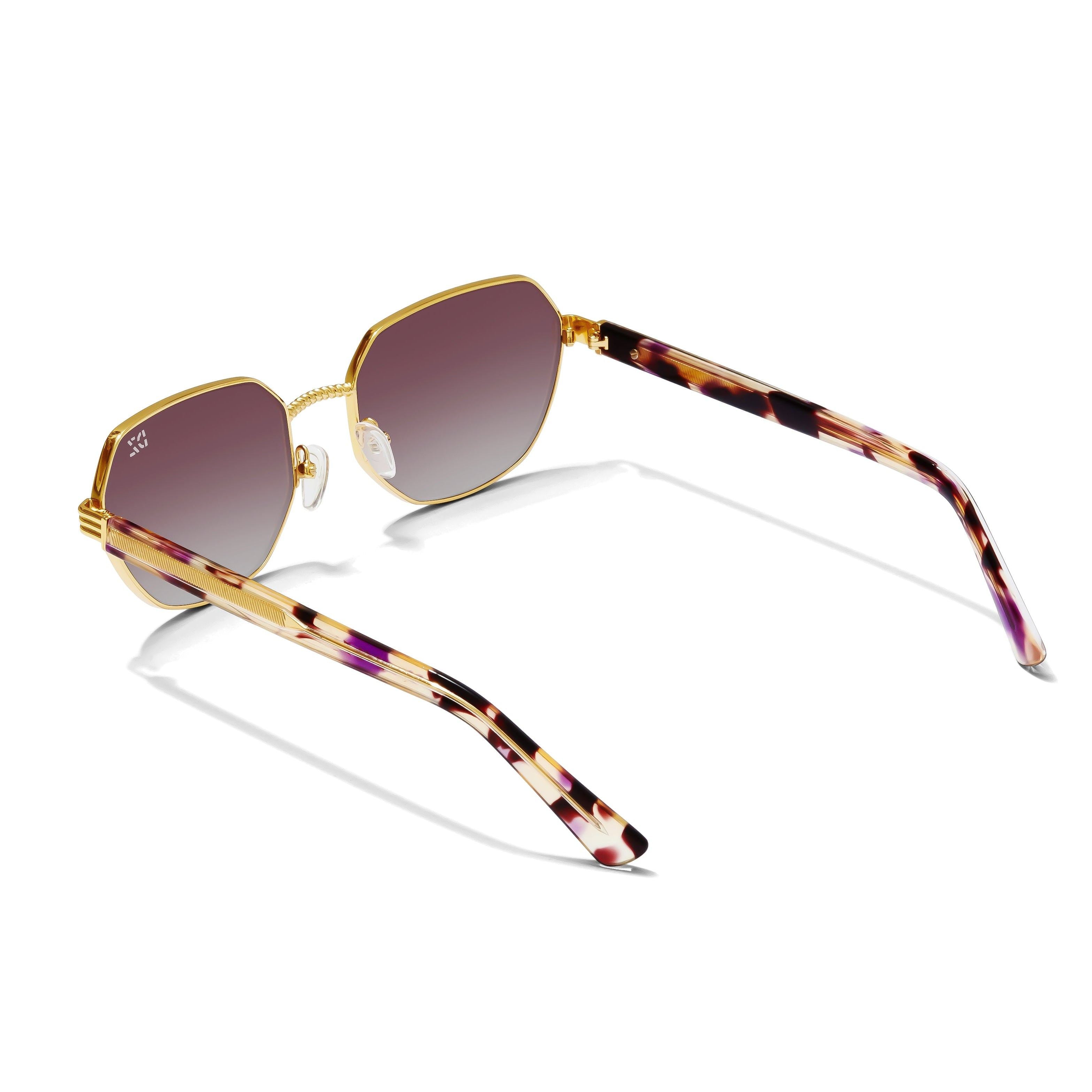 Sunglasses with gold frame and tortoiseshell accents on a white background