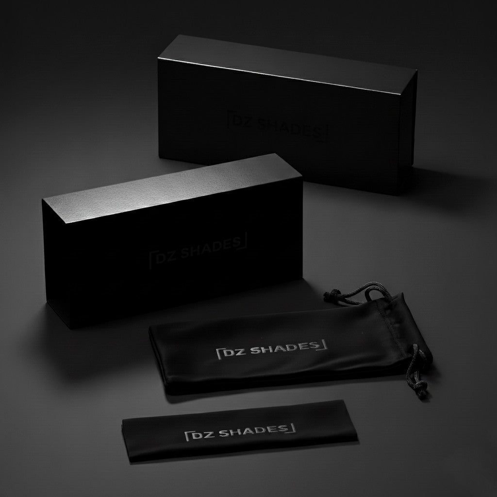 Luxury starts before you wear them. Signature box case, pouch, and cleaning cloth included.